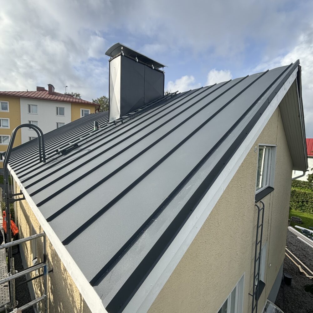 5. Lopuksi asennetaan peltilistat, kattoturvatuotteet, sadevesijärjestelmät, sekä suoritetaan työmaan loppusiivous